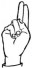На ћирилици написано МИЊА РЕСКОВИЋ састоји се из 12 слова [?]. Исписано ћириличном једноручном азбуком за глувонеме: